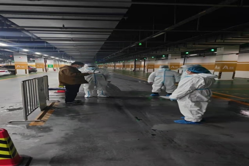 行動(dòng)及時(shí)高效,保障王府井奧萊小鎮安全停車(chē)環(huán)境。開(kāi)投集團子公司春華怡和置業(yè)公司及時(shí)行動(dòng)、多措并舉抓好水岸小鎮H區(項目)地下停車(chē)場(chǎng)防控,于2月16日早及時(shí)行動(dòng),對地下停車(chē)場(chǎng)即刻采取疫情防控管理應急措施,封閉停車(chē)場(chǎng)東北入口及東南出口,只開(kāi)放南出入口。置皓公司全體員工24人(含物業(yè)臨聘人員14人)全部投入到停車(chē)場(chǎng)防疫工作,他們身穿隔離服、戴隔離面罩及防護口罩,在加強自身防護的前提下,對停車(chē)場(chǎng)進(jìn)行“地毯式”消殺,嚴格按規范進(jìn)行噴灑,不放過(guò)任何一處死角,對重點(diǎn)區域進(jìn)行定時(shí)消殺。對進(jìn)入車(chē)輛進(jìn)行輪胎及車(chē)輛外圍消殺,對車(chē)上人員測量體溫、查看健康碼、核查核酸檢測情況,并對車(chē)內人員進(jìn)行詳細的信息登記,提醒他們做好個(gè)人防護。同時(shí)建立應急機制,設置地下停車(chē)場(chǎng)隔離室,對突發(fā)情況第一時(shí)間上報,從嚴從實(shí)筑起疫情防線(xiàn),確保停車(chē)環(huán)境安全。