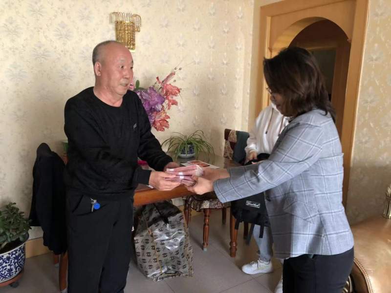 圖為工會(huì )主席張冬梅探望寧澤英家屬現場(chǎng)