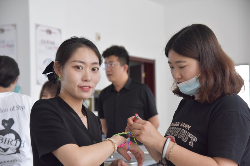 彩繩編織心靈巧。經(jīng)過(guò)壓、挑、穿、拉等步驟,五彩繩在手指的靈活捻動(dòng)下,誕生了一個(gè)個(gè)漂亮的金剛結、雙聯(lián)結、鎖結等,絲絲彩繩寓意著(zhù)祈福納吉、期盼美好,也傳遞著(zhù)濃濃端午情。大家一邊編織五彩繩,一邊互相交流著(zhù)誰(shuí)編織的樣式更新穎。