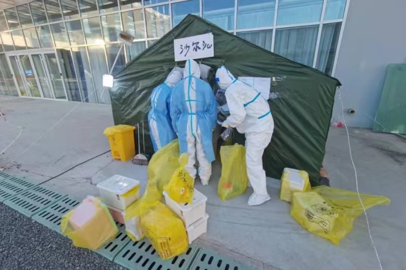 圖為工作人員在疫情防控工作中的現場(chǎng)工作照