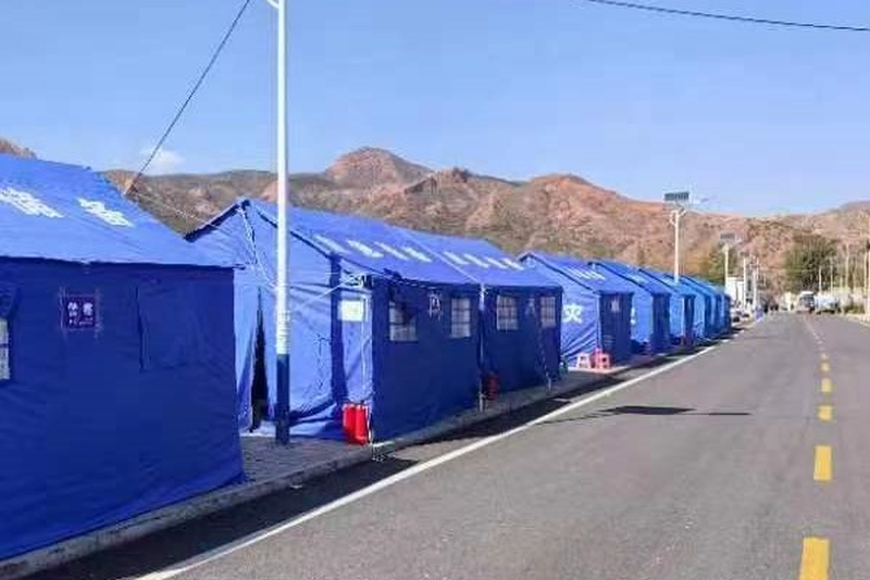圖為山腳下臨時(shí)搭建起的帳篷成為大家工作之余的休息點(diǎn)